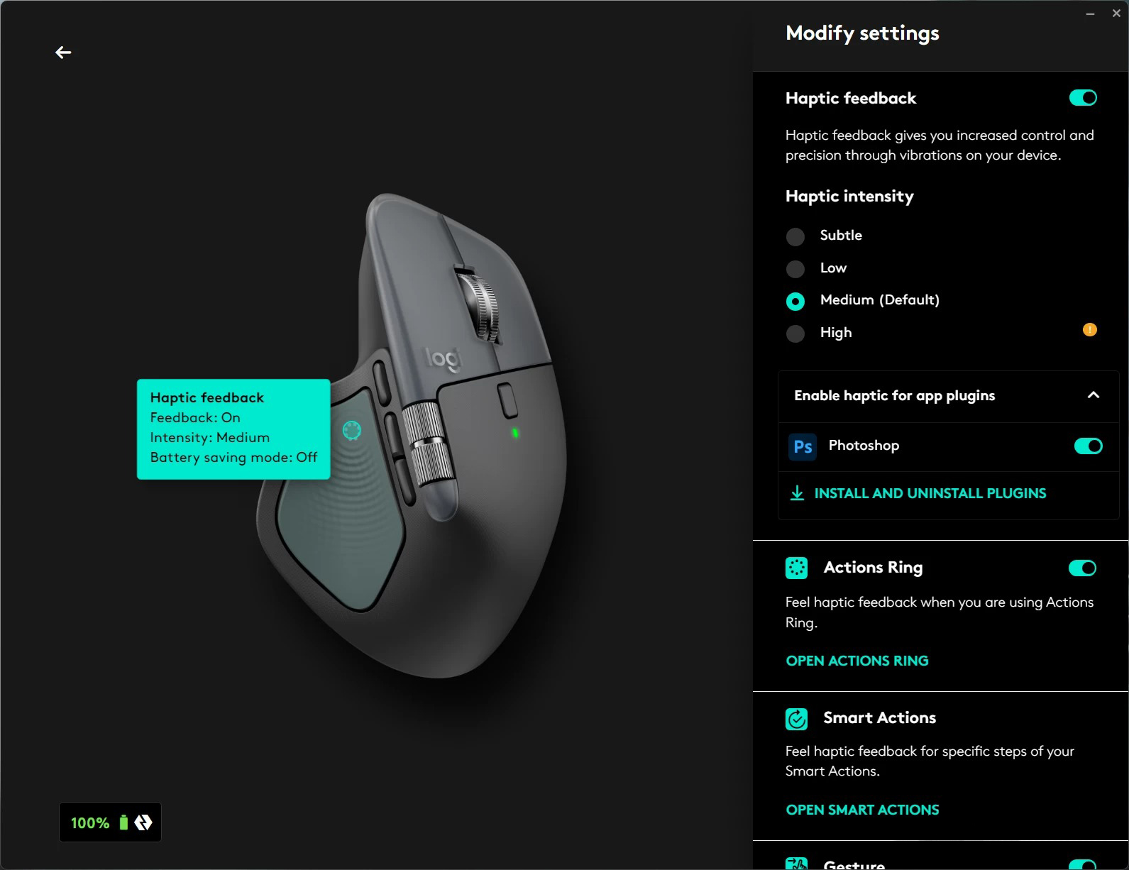 ثانيًا، تمت إضافة تغذية لمسية قابلة للضبط تعطيك إحساس تأكيد للأوامر، وهي مفيدة خصوصًا عندما تعمل بسرعة وتريد استجابة محسوسة بدون أن تشتت نظرك.